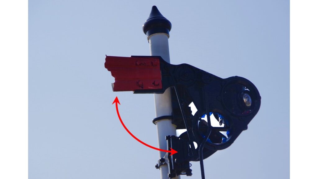 どちらも、腕木または矢羽と呼ばれる棒状のものが飛び出したり、